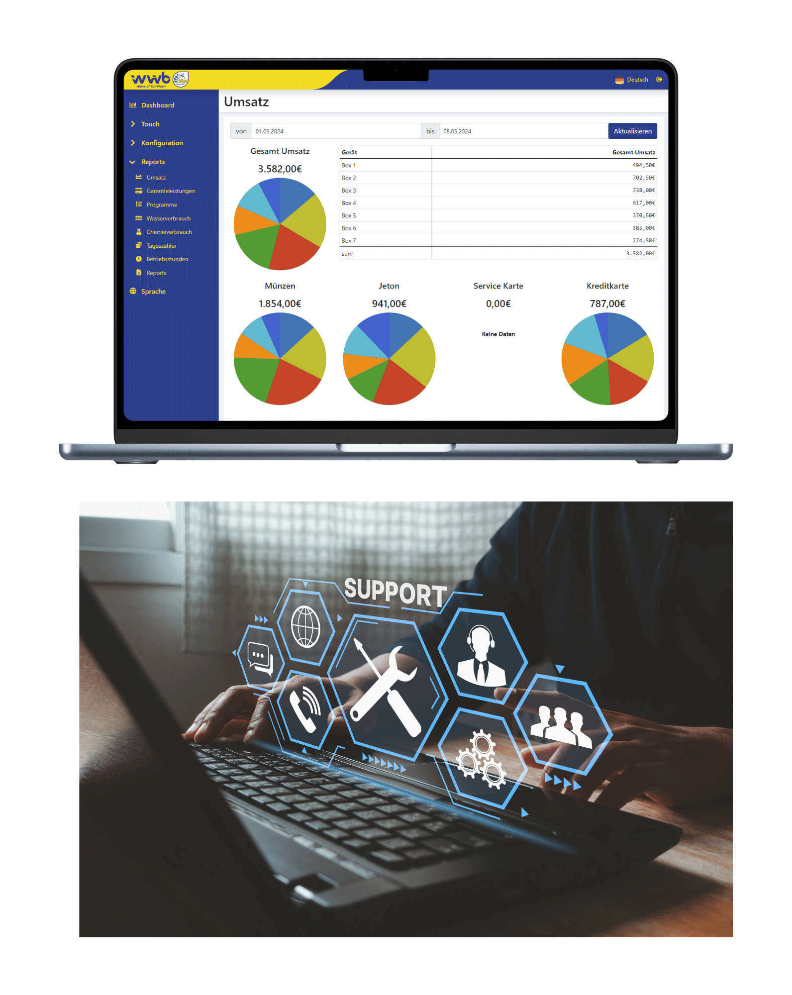 Mit iWap haben Sie Ihre unternehmerische Intension über Arbeitsprotokolle, Zahlungsvorgänge, Waschverhalten der Kunden sowie einen jeweils aktuellen Stand der Datenerfassung für zeitnahe Abrechnungen immer im Überblick.